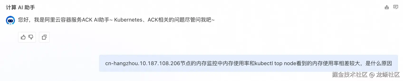 ACK AI 助手是构建在阿里云容器服务 ACK 之上的智能运维助手。