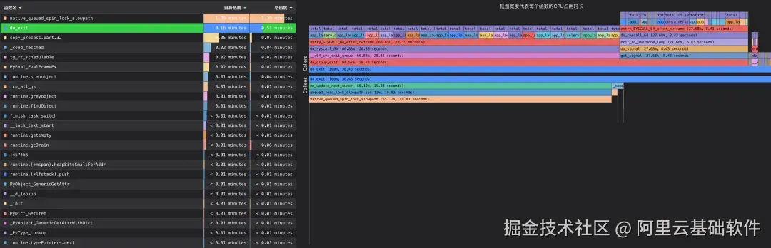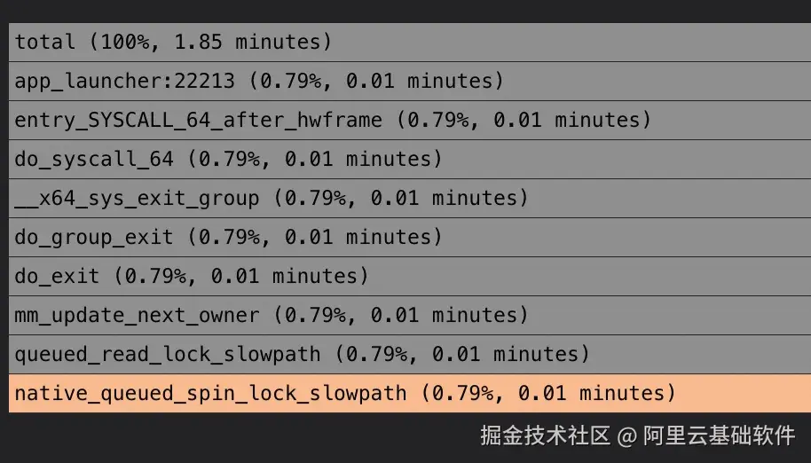 选择 top2,是在做进程退出的函数,大部分是在做等 tasklist_lock 锁的热点上。