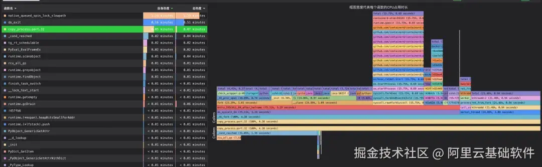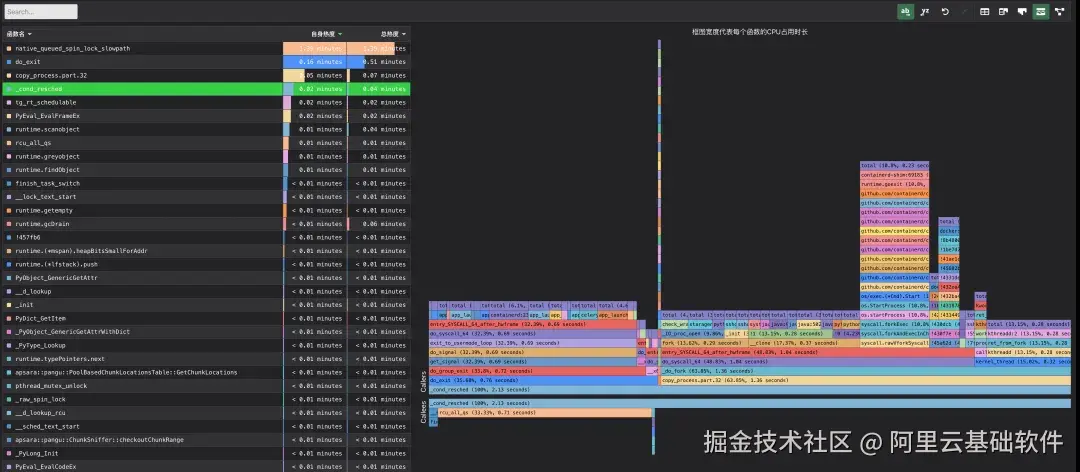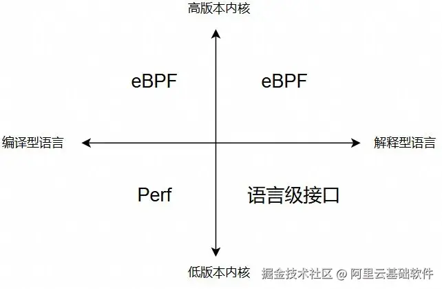 1)Perf 作为一个历史悠久的性能分析工具,它支持所有版本的内核,但在处理动态语言方面表现不足。此外,当使用基于 dwarf 的栈回溯时,由于需要将整个用户态栈空间输出到用户态程序,这会导致较大的资源消耗。