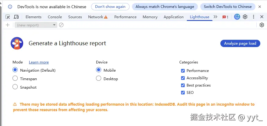 | 真实环境测试 | 在无痕窗口中重新运行 Lighthouse,排除 IndexedDB/缓存干扰 | 获取更准确的首次访问性能数据 |