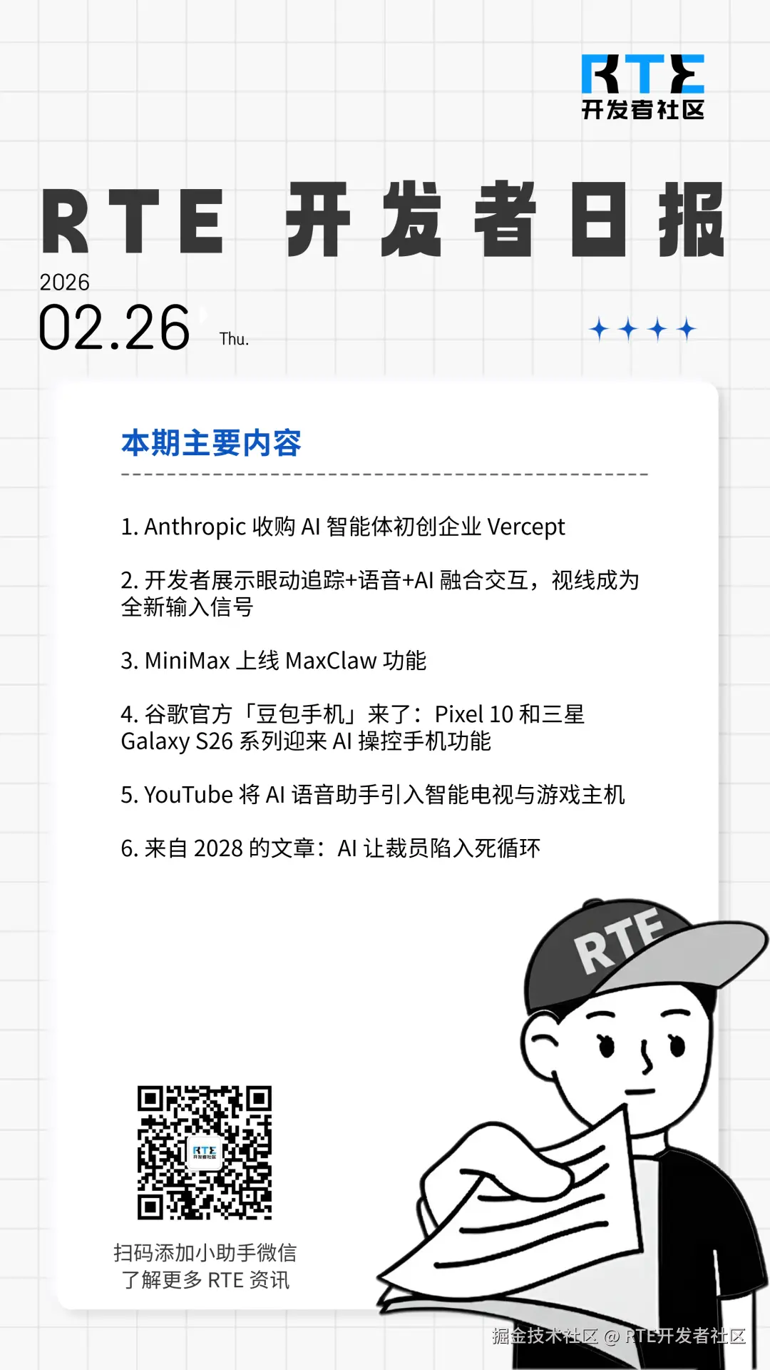 这里是 「RTE 开发者日报」 ,每天和大家一起看新闻、聊八卦。我们的社区编辑团队会整理分享 RTE(Real-Time Engagement) 领域内「有话题的技术」、「有亮点的产品」、「有思考的文章」、「有态度的观点」、「有看点的活动」,但内容仅代表编辑的个人观点,欢迎大家留言、跟帖、讨论。