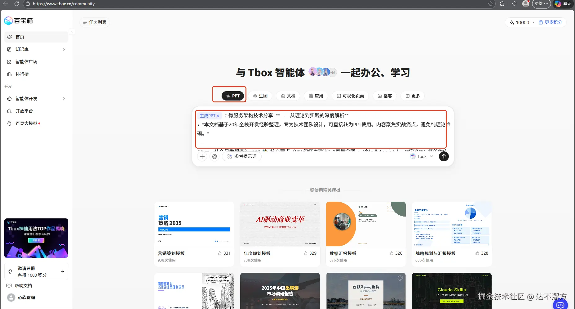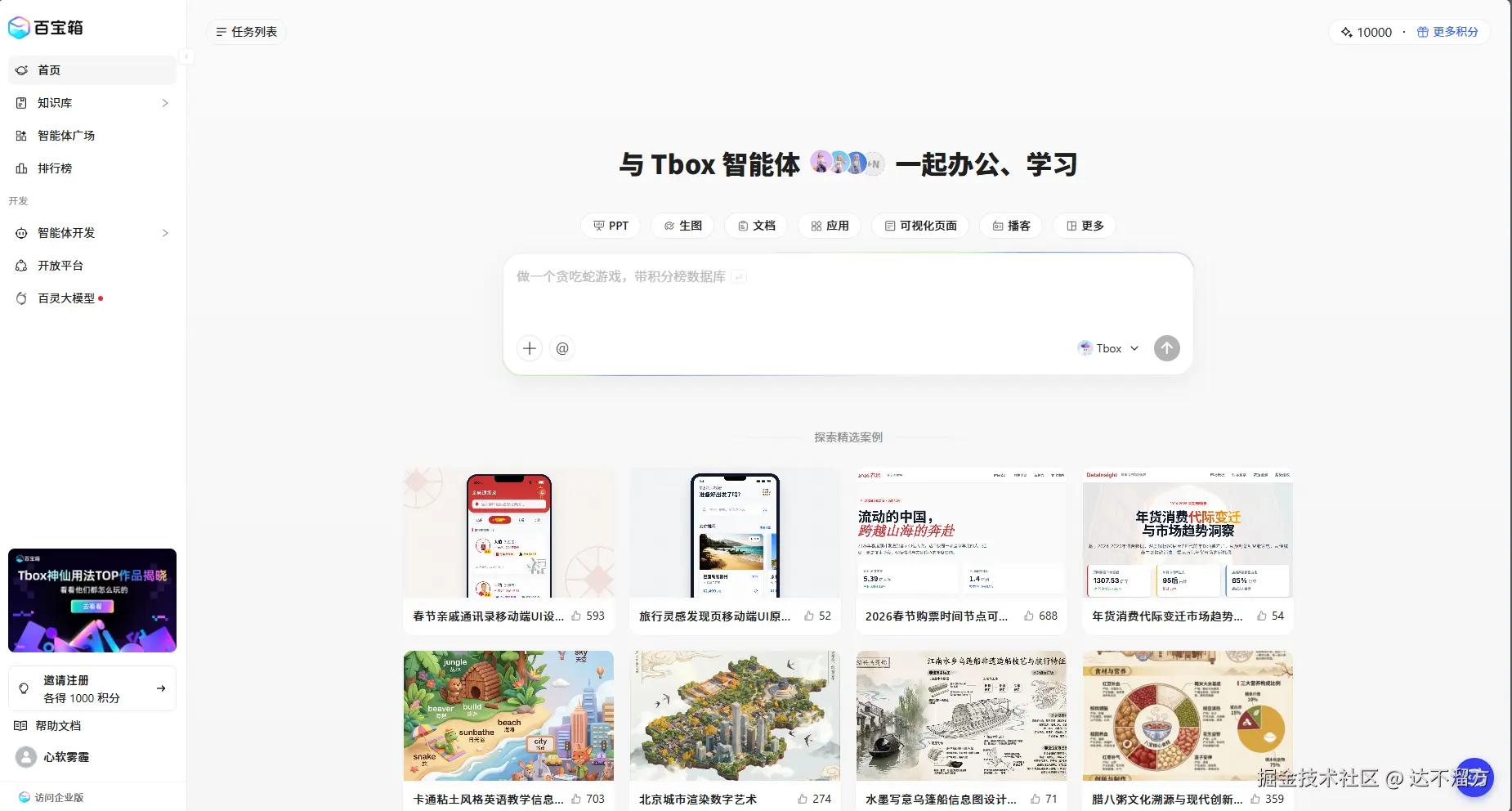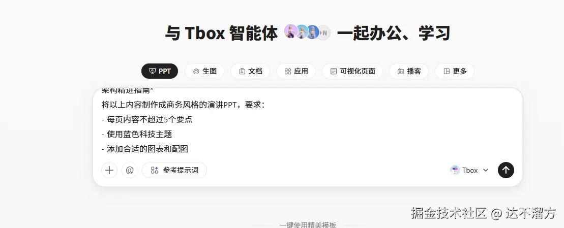 - 更多办公场景创作:与 Tbox 智能体 一起办公、学习