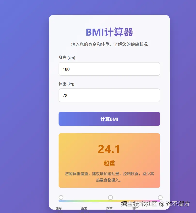 advice = "您的体重偏重,建议增加运动量,控制饮食,减少高热量食物摄入。";