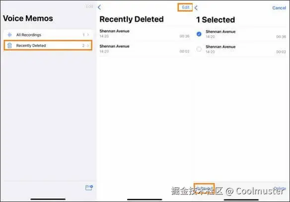 2.1 从“最近删除”文件夹恢复 iPhone 上消失的语音备忘录