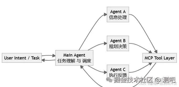 这套结构与微服务、Actor Model、Workflow 编排高度一致,只是调度逻辑由自然语言驱动