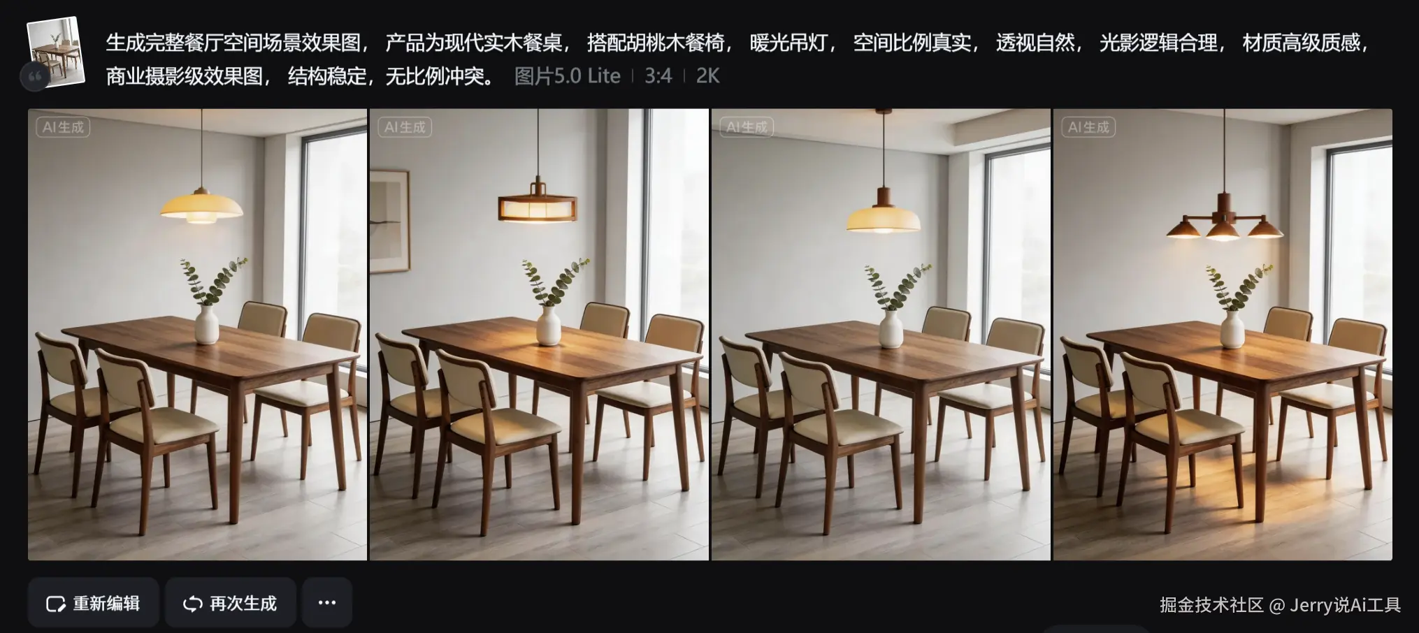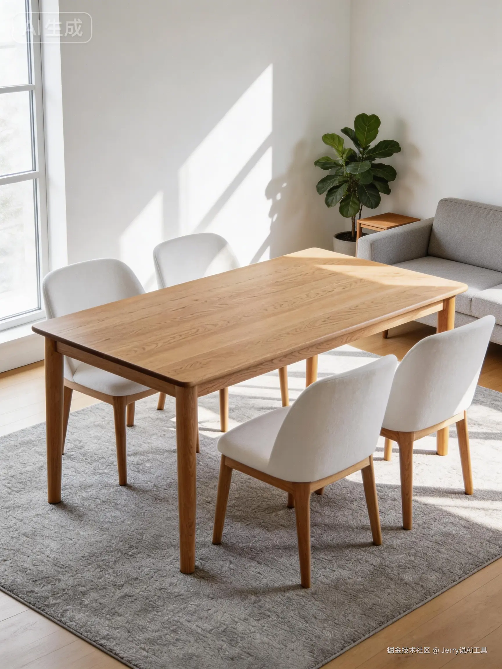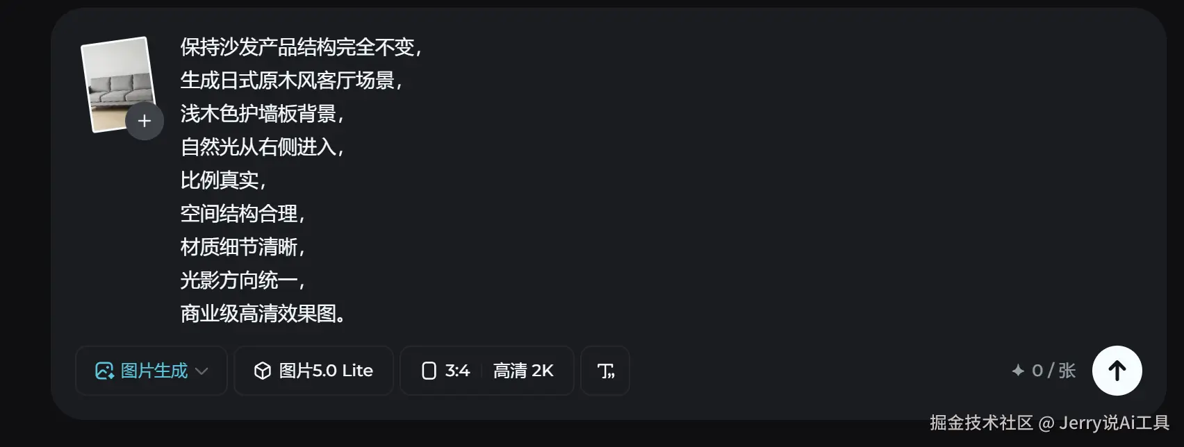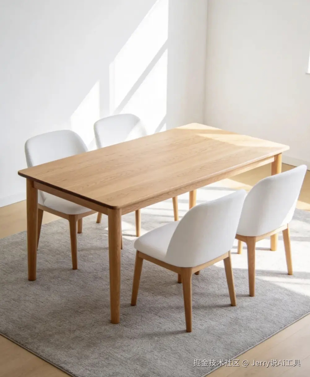 二、实操案例一:餐桌实拍图 → 北欧客厅场景图