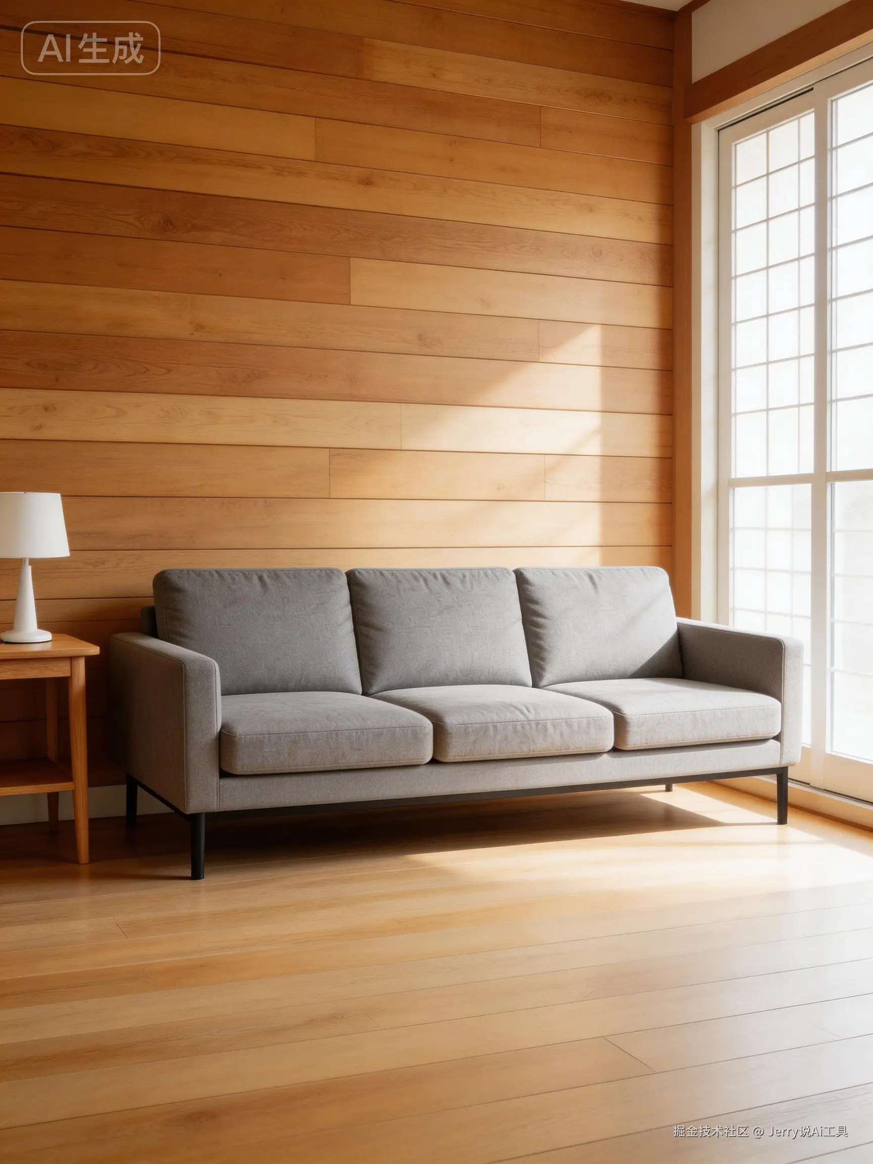生成日式原木风客厅场景,