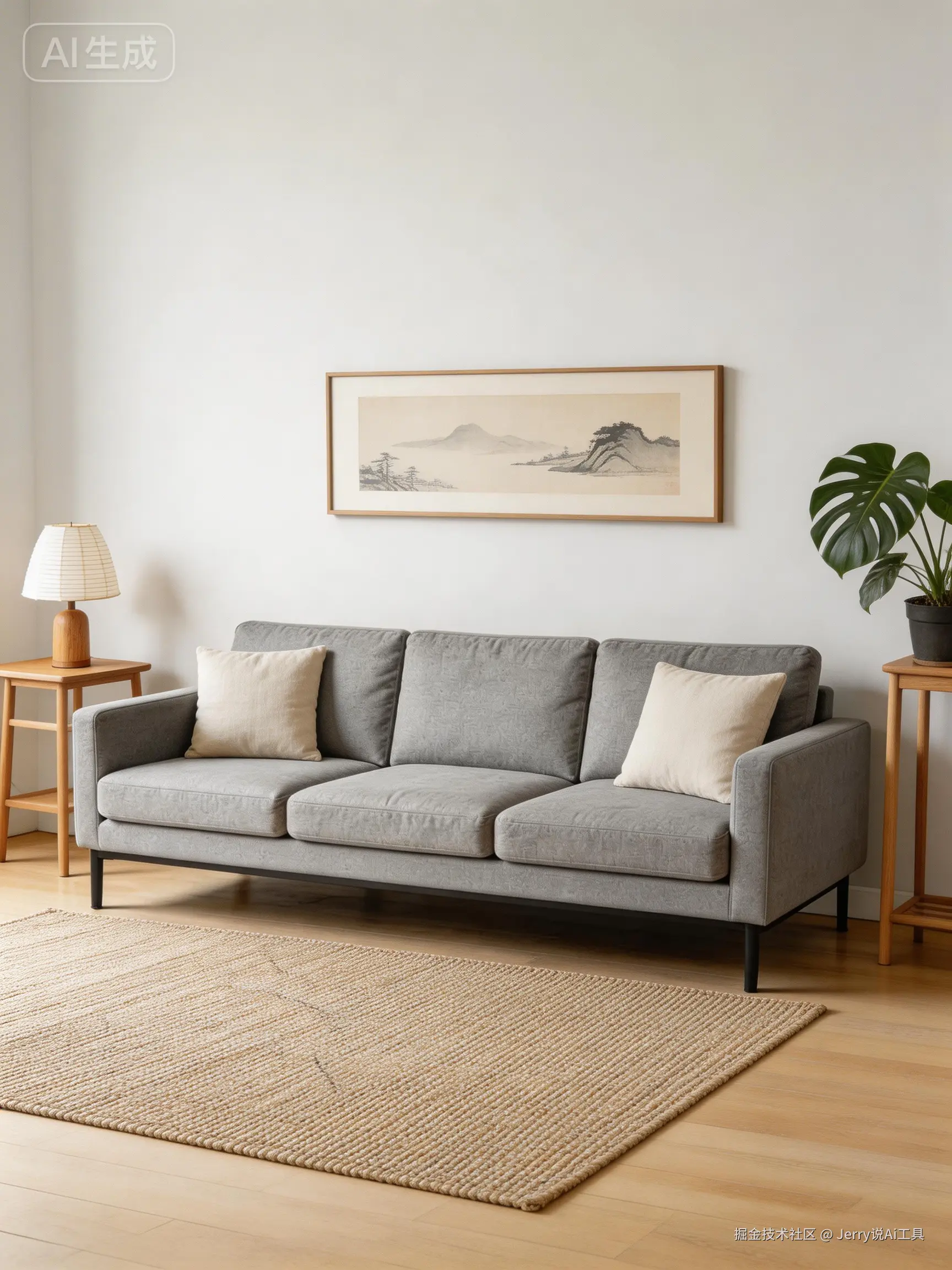 生成北欧极简风客厅场景效果图,
