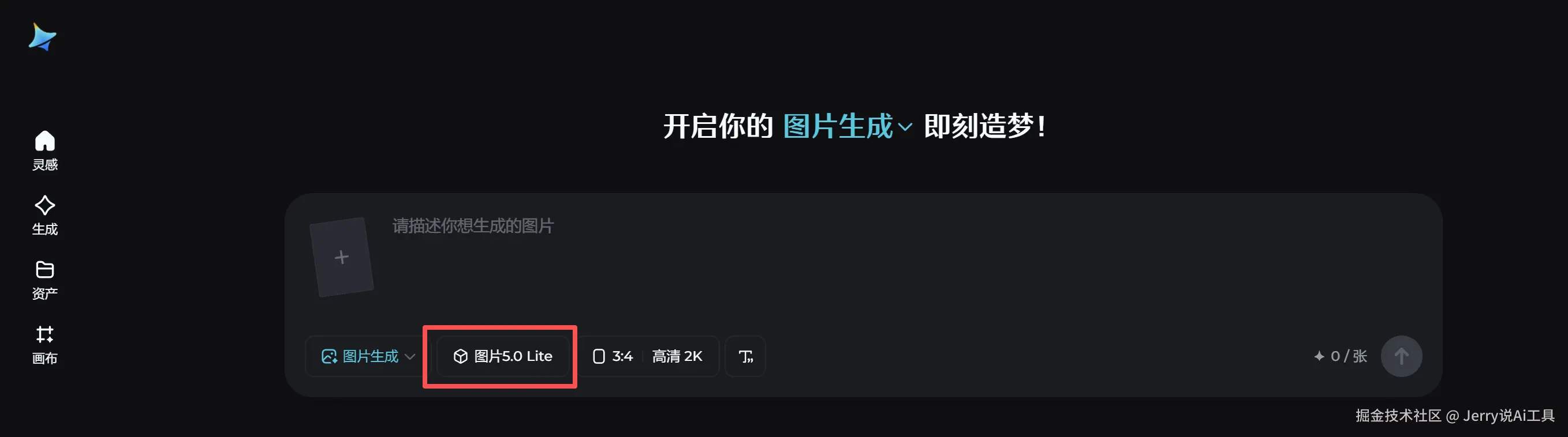 2️⃣ 选择 图片生成,选择图片5.0Lite(Seedream5.0模型)