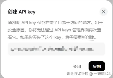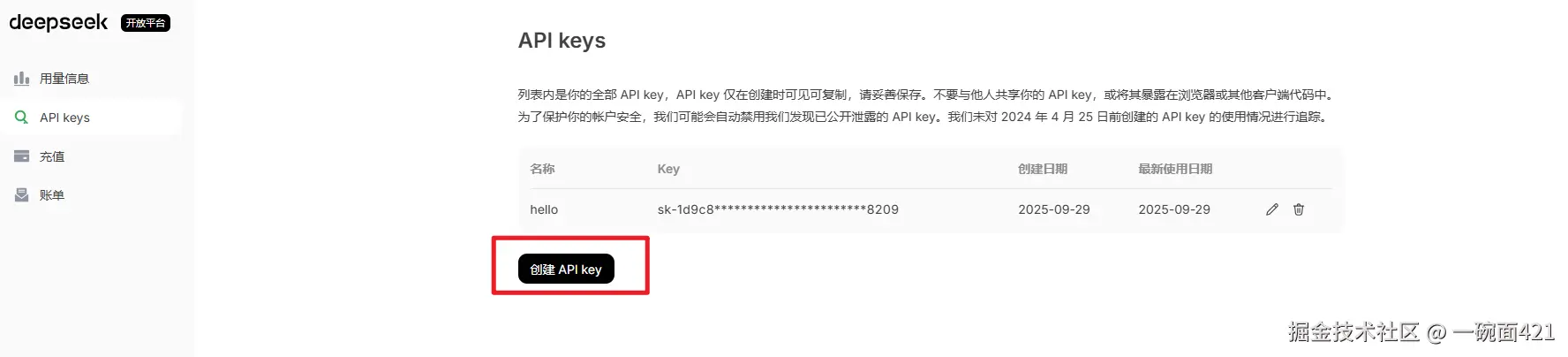- 登录完成找到API keys,并且创建一个API key