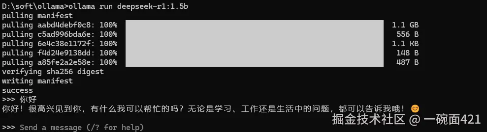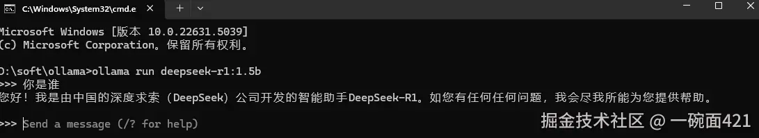 ollama run deepseek-r1:1.5b