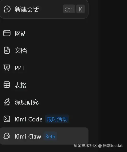 使用Kimi Claw的步骤十分简便。先注册或登录Kimi账户,再从左侧边栏打开Kimi Claw。
