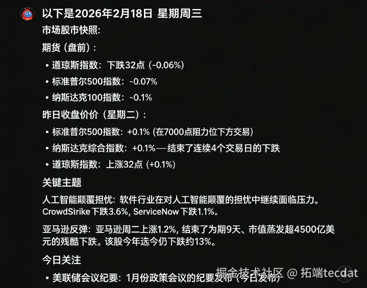 传统的聊天机器人只能处理单次、无状态的对话,无法胜任需要长期记忆、定时执行和多步骤协作的复杂任务。在实际客户咨询项目中,我们频繁遇到自动化监控、定时报告生成、多源信息整合等需求,这些需求若通过传统脚本或 API 管理,不仅开发成本高,而且维护困难。我们团队曾为一家金融科技客户设计了一套基于大型语言模型的持续工作流方案,帮助他们实现了每日市场简报自动生成、异常监控报警等功能。