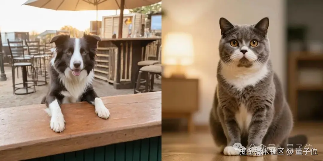 SkyReels-V4 看一眼两张参考图:把狗和猫的毛色、身形全都扒下来,但摒弃了两张图的背景。