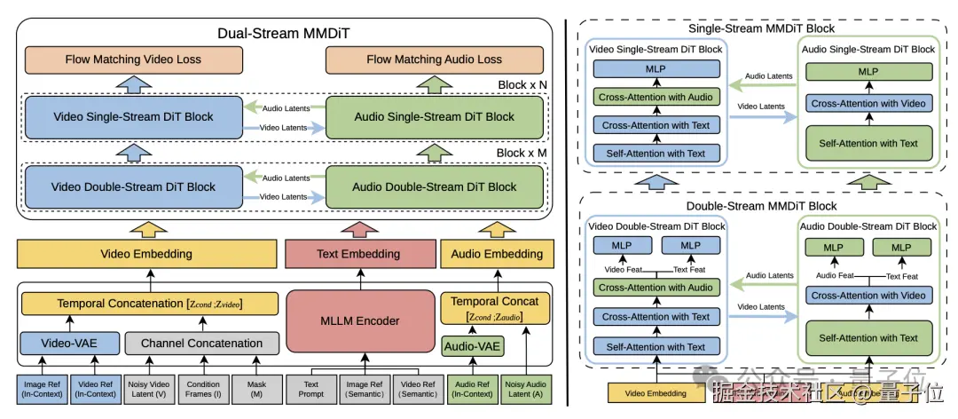 它采用双流 MMDiT 架构,把音、视频从底层就焊在了一起。