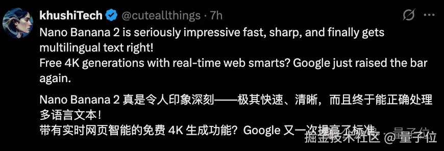 有网友这波直接大夸特夸:(Nano Banana 2)能实时搜索还能免费生成 4K 图片?谷歌又一次提高了标准。