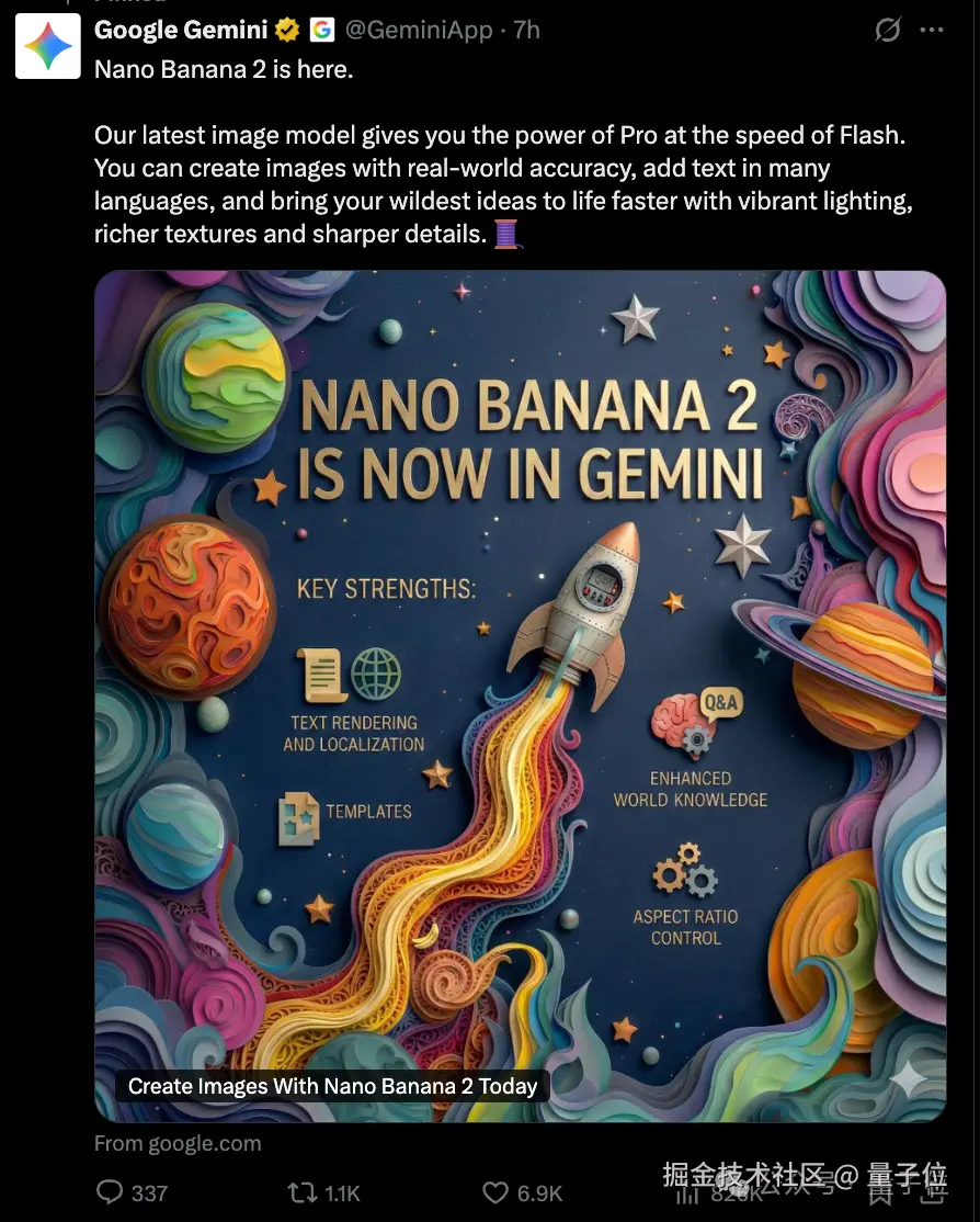官方表示,Nano Banana 2 是将 Gemini Flash 的高速智能引入了视觉生成。