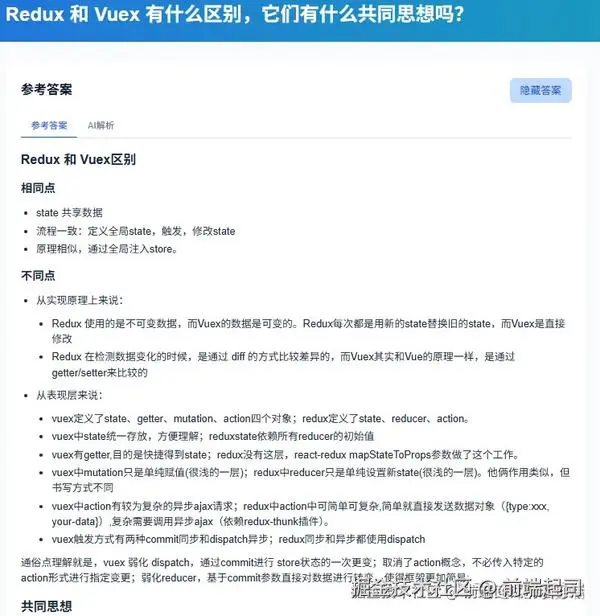 Redux 和 Vuex 有什么区别,它们有什么共同思想吗?