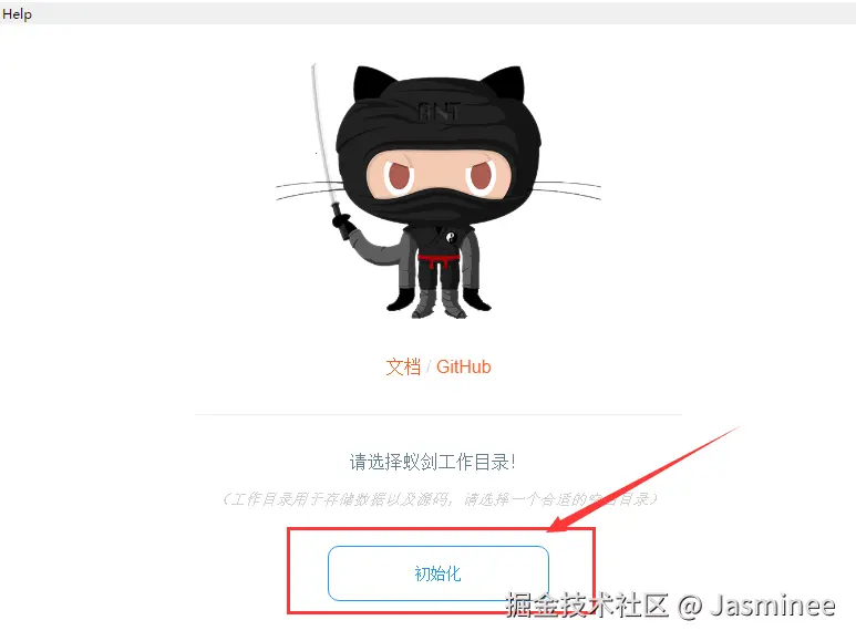 选好目录后,点击 初始化 按钮,蚁剑就会把源码和配置文件放到这个目录里,之后就可以正常使用了。