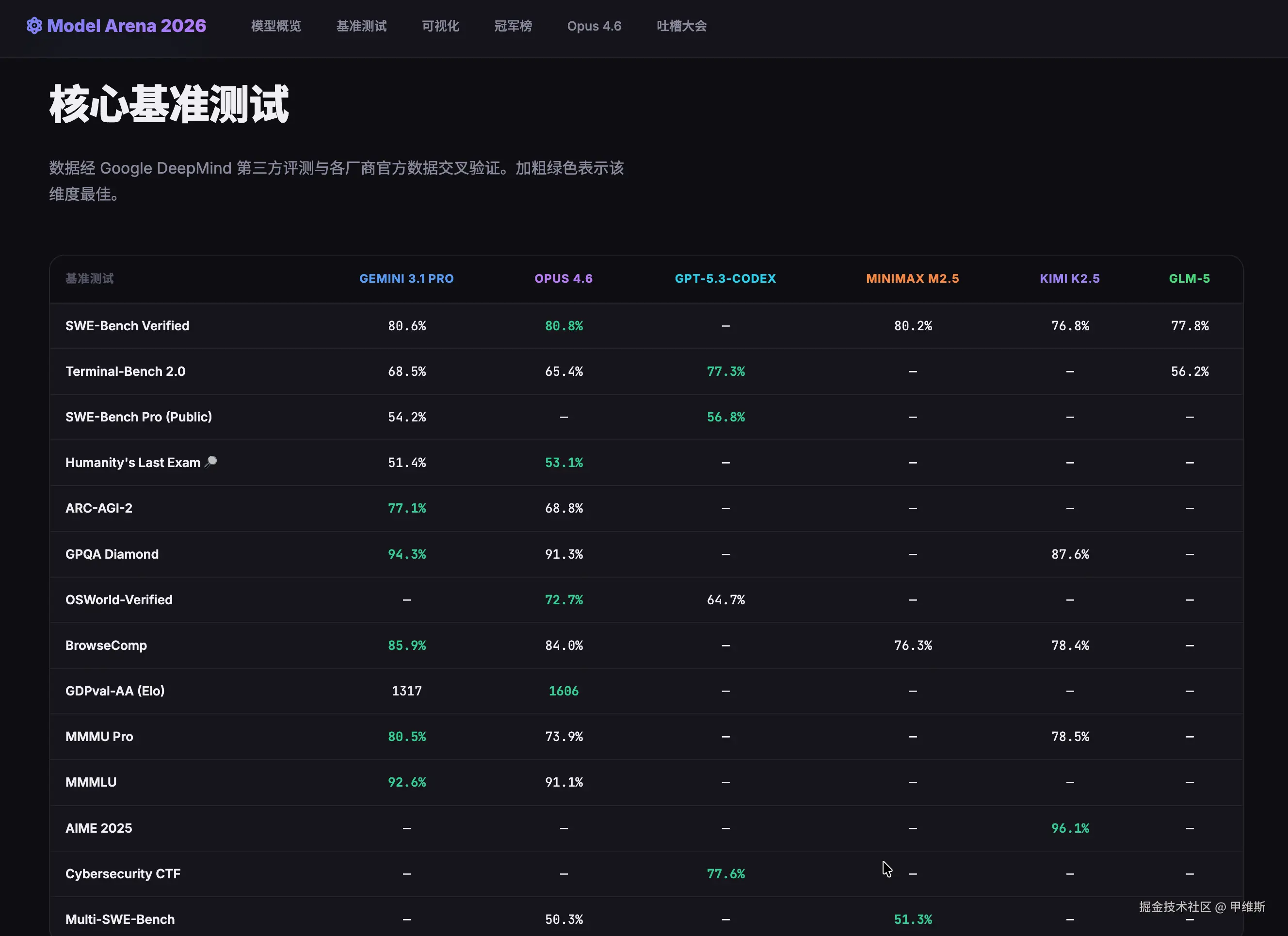 经过分析,可用的基准数据最充分,准确率最高的是 Opus 4.6;有些模型数据少到离谱,完全靠中文凑字数。