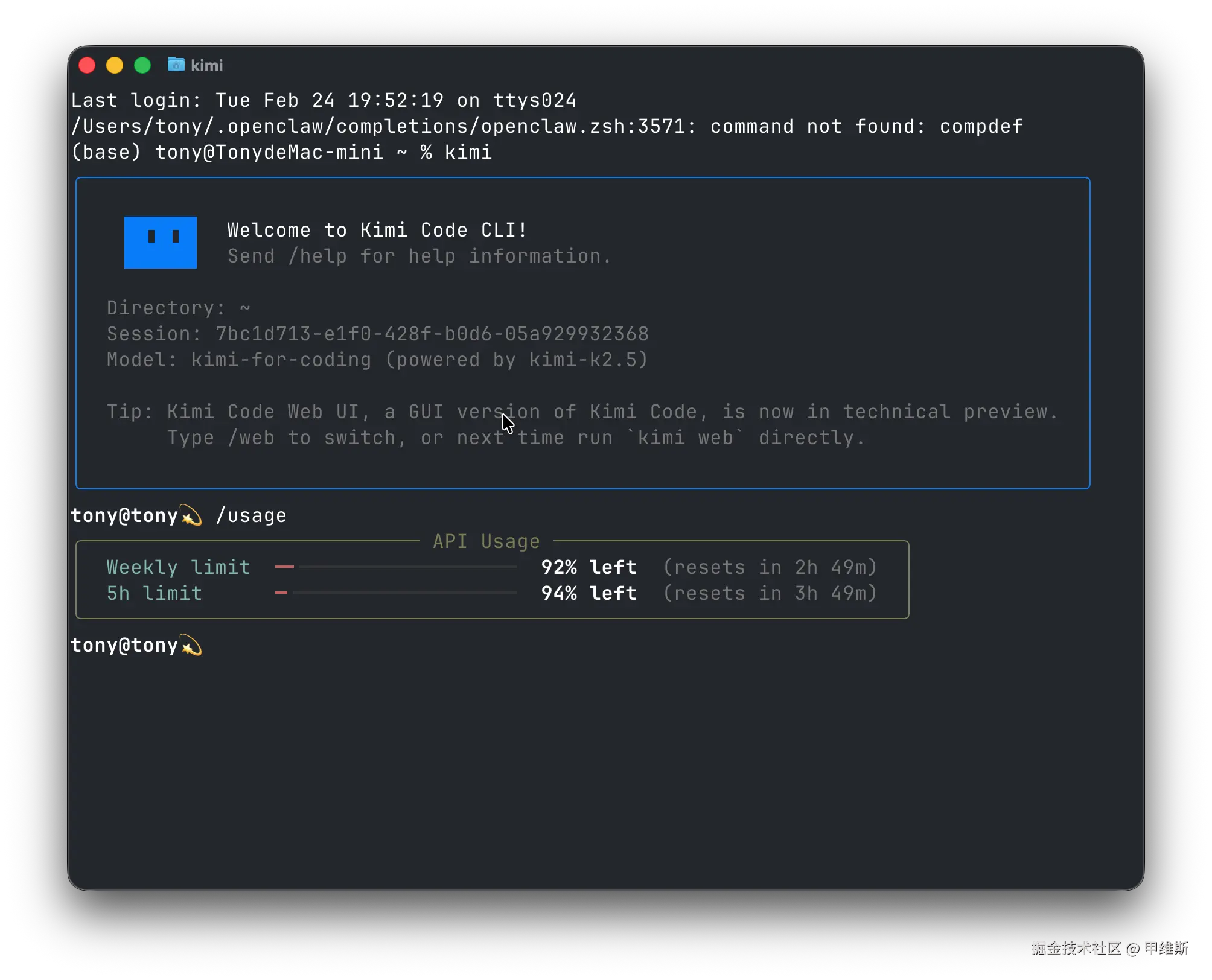 我是使用 Kimi 自家的 CLI 工具。这个工具吧,给人一种小清新的感觉。整个执行起来,速度很快,配额消耗也不多。因为使用了它家的工具,所以网页抓取部分,也是它自家的处理逻辑。虽然它没有调用浏览器,但是整体来说它的数据量也还可以,主要是它对数据分类和规划比较好,导致它的报告和网页,给人比较详细的感觉。