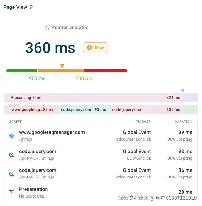 你还可以查看具体的慢脚本,判断延迟是来自应用本身的 React 代码,还是来自分析工具等第三方代码。
