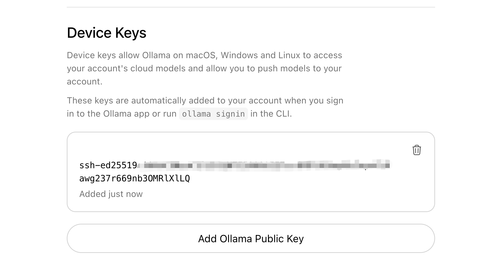 先去ollama.com/settings/ke… key,再设置环境变量启动: