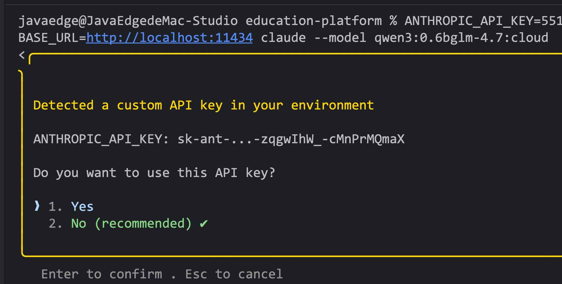 ANTHROPIC_AUTH_TOKEN=ollama ANTHROPIC_BASE_URL=http://localhost:11434 claude --model qwen3:0.6b