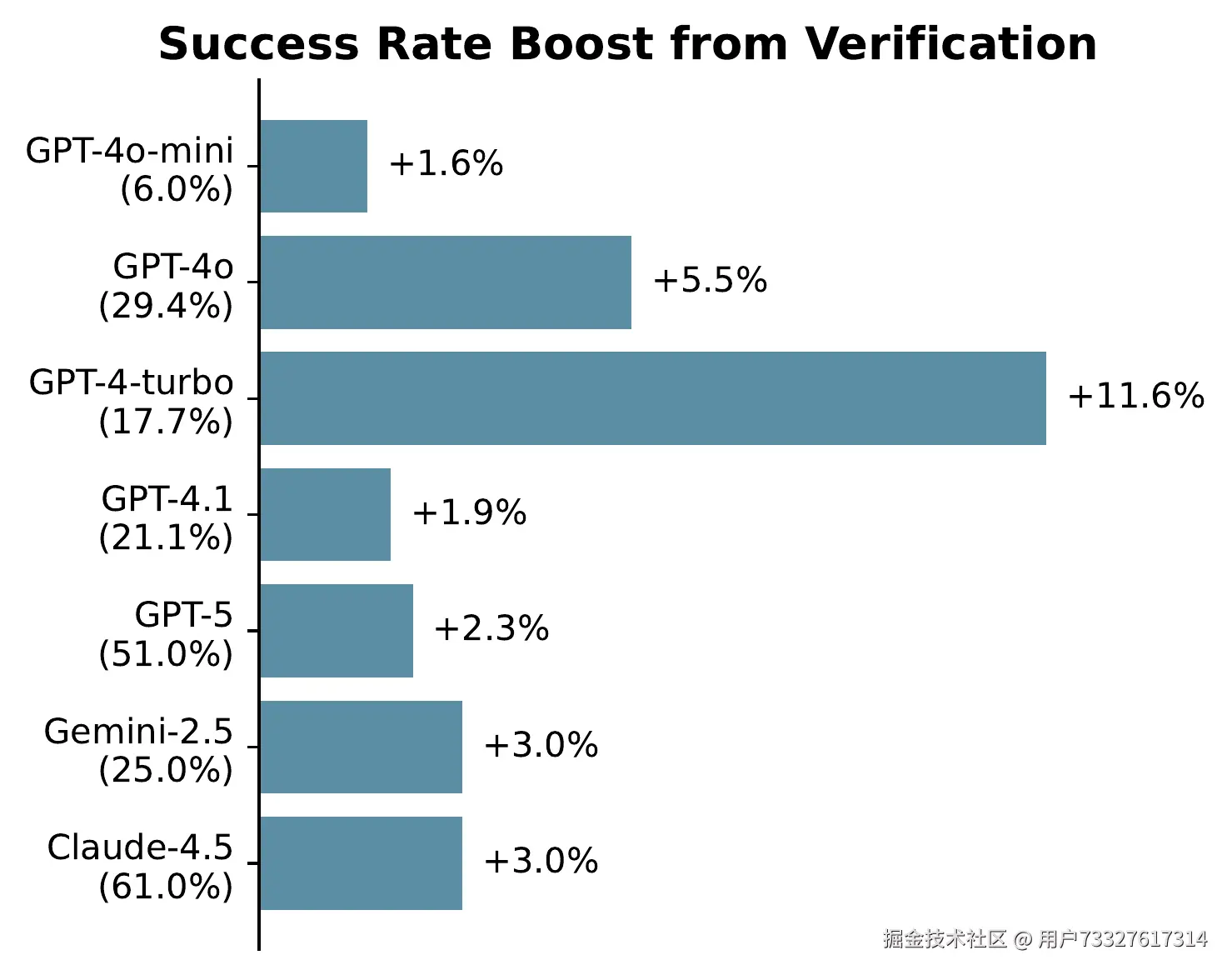 这一简单策略提高了所有智能体的成功率,其中中等容量模型的增益最大。