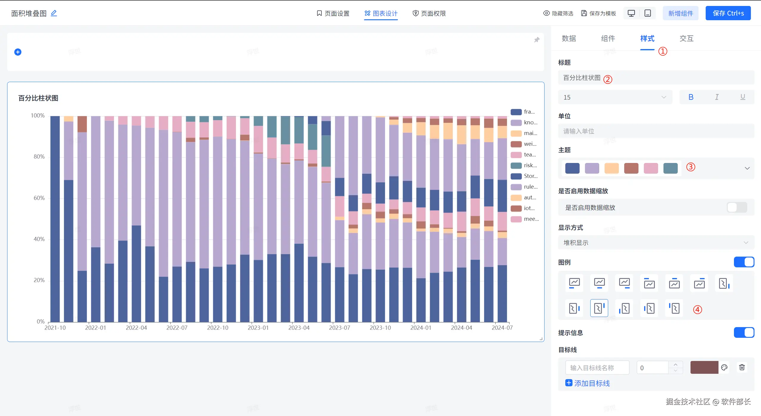 右侧展示组件的数据配置、组件切换、样式配置、和交互操作等细节的配置。点击样式配置: