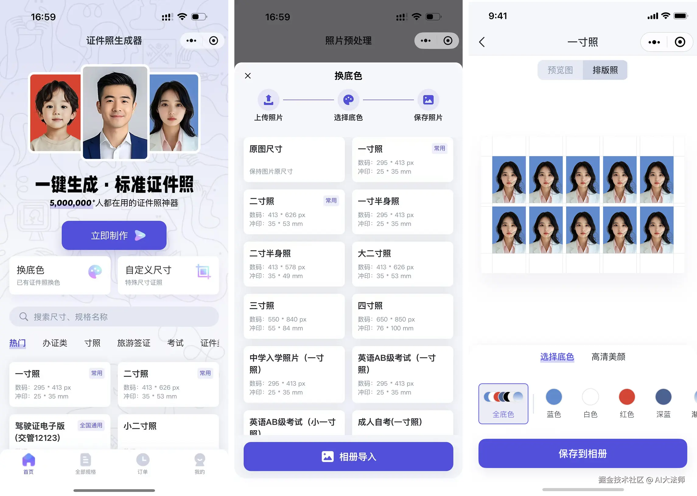 - 提供常见证件照规格选择。