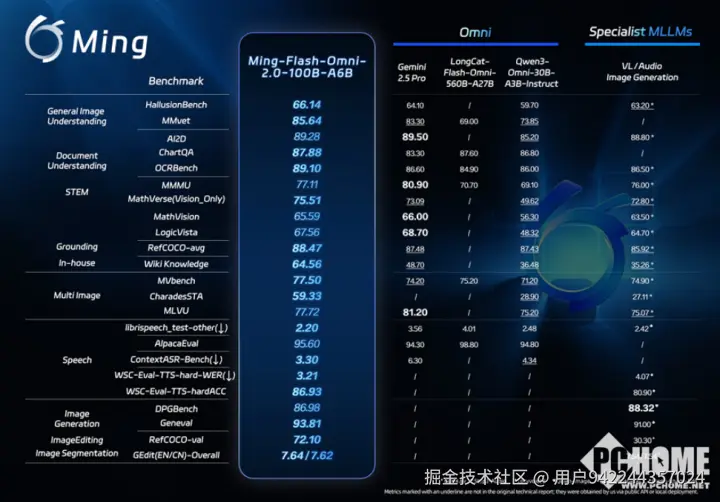 Ming-flash-omni 2.0在音频、视觉、多模态任务上的性能表现