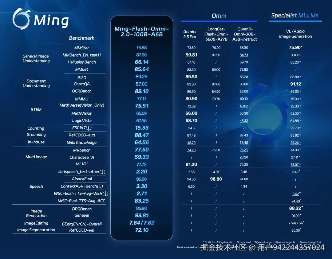 - Ming-flash-omni-Preview / Ming-flash-omni 2.0:图像与音频双模态理解,支持语音、音效、音乐同轨生成