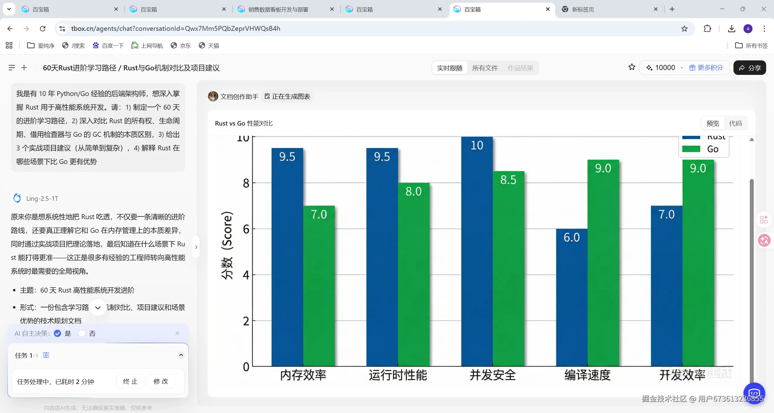 它不仅给出了详细的学习路径,还能根据我的背景(Python 开发者)来类比讲解 Rust 的概念。这种个性化的学习体验,比看文档效率高太多了。