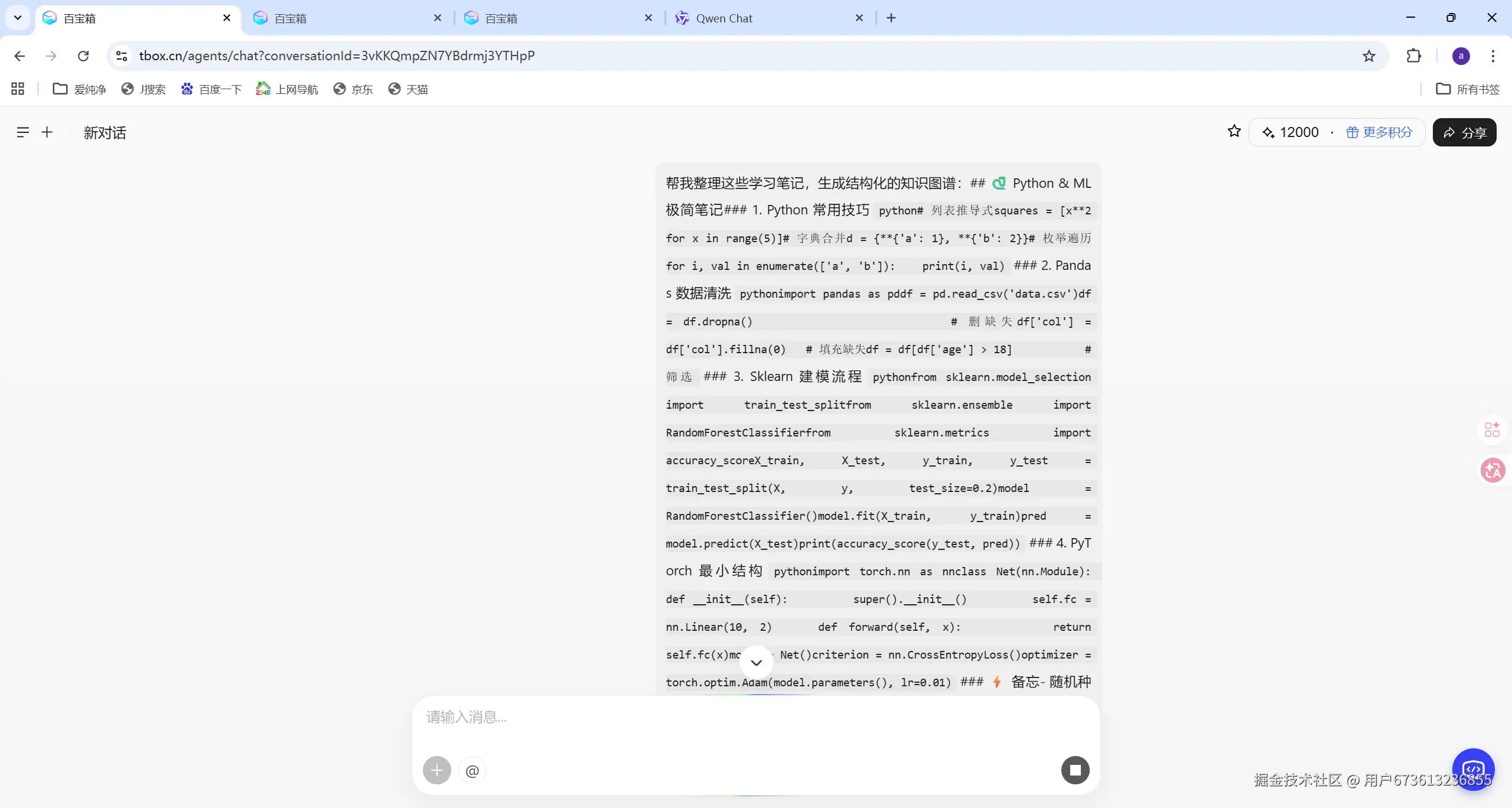 我把一周的学习笔记(零散的文字、代码片段、网页链接)全部丢给 Tbox,让它帮我整理成结构化的知识图谱。