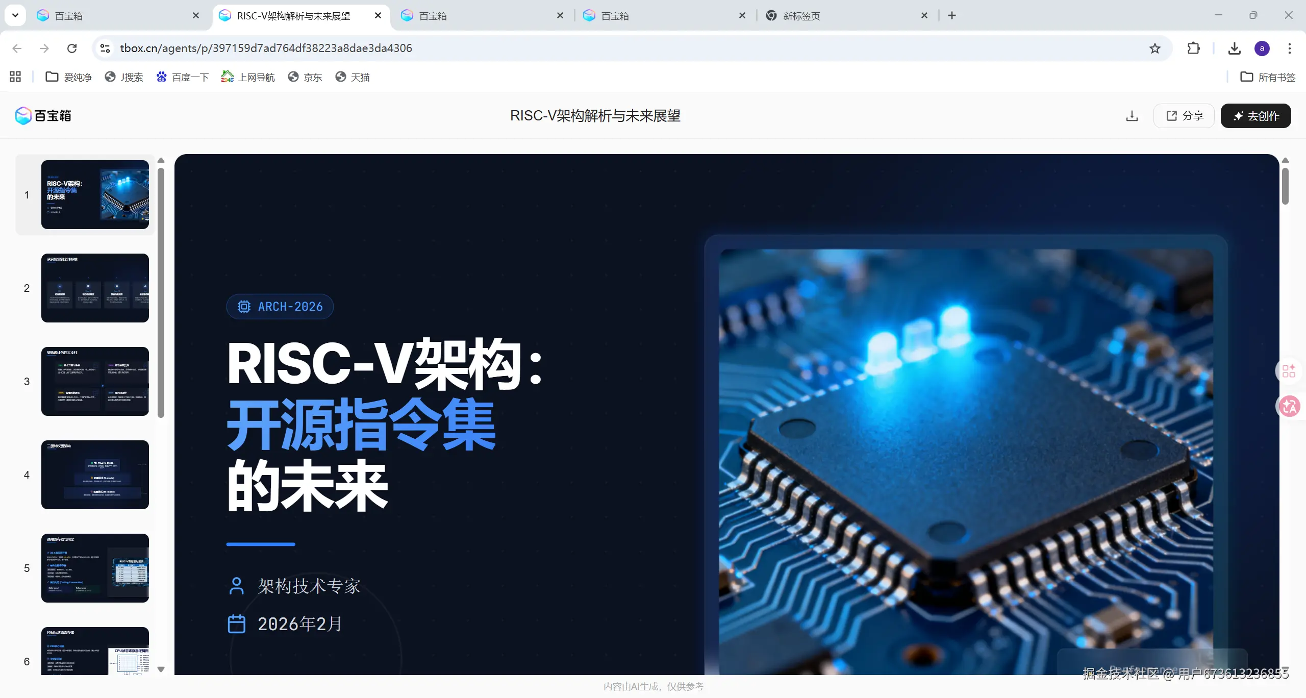 Tbox 不仅快速生成了完整的 PPT 框架,还自动: