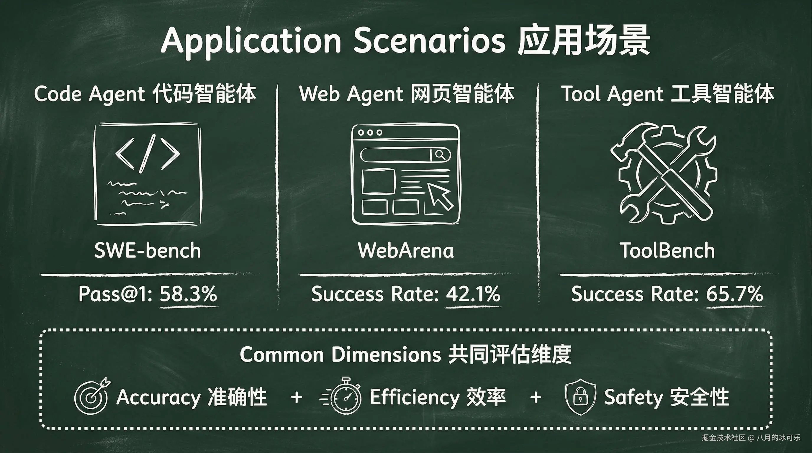 小张:这个得看场景。我们代码Agent用SWE-bench,Web交互用WebArena,通用能力用GAIA,工具调用密集型用ToolBench。