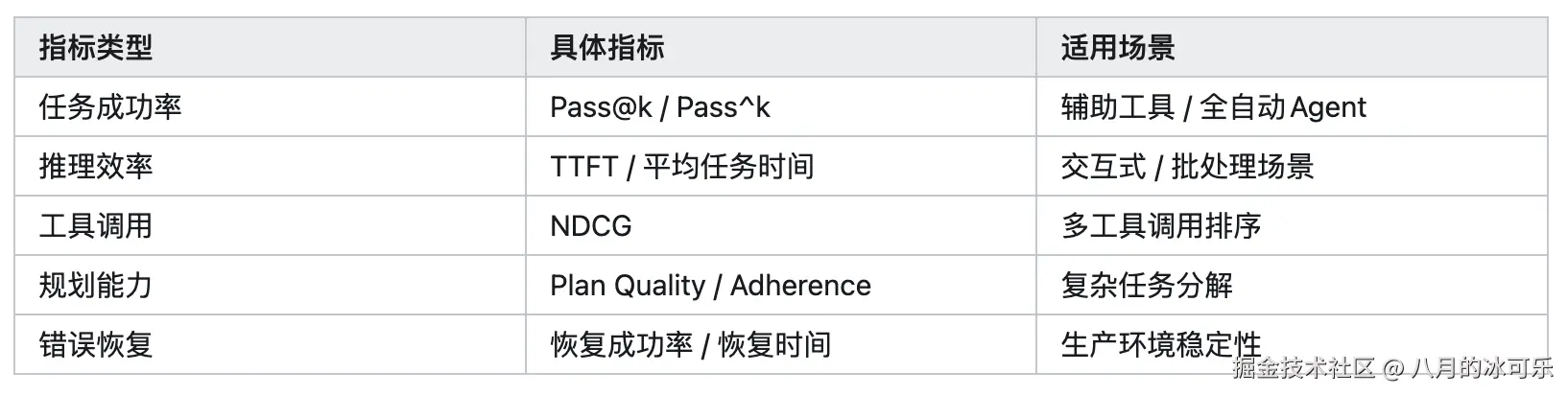 小张:哦对,还有个点,除了结果判断,效率也非常重要。Agent是有调用轨迹的,俗称Trace。具体看的点就是效率,比如同样完成了任务,一个Agent调了3次工具,另一个调了30次,效率差距也不能忽视