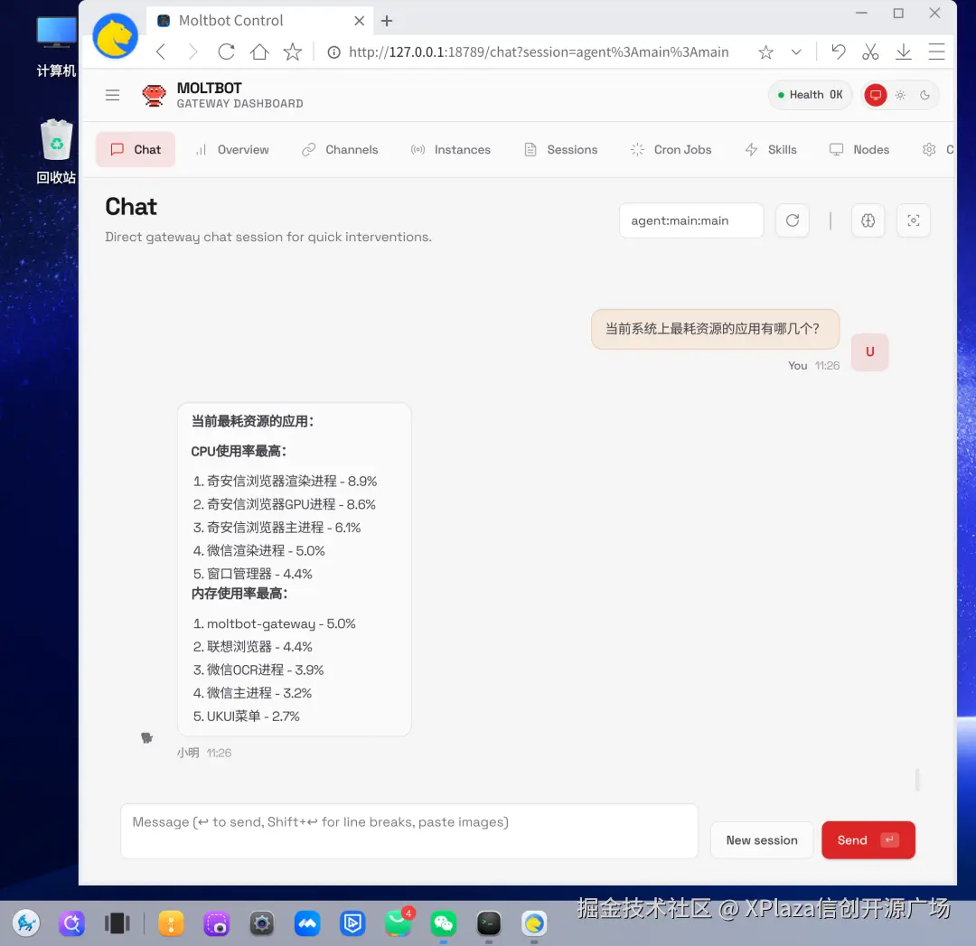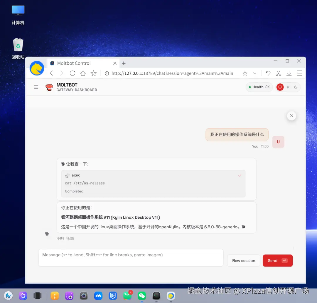 OpenClaw可以准确识别操作系统,并完成相应的系统级操作。
