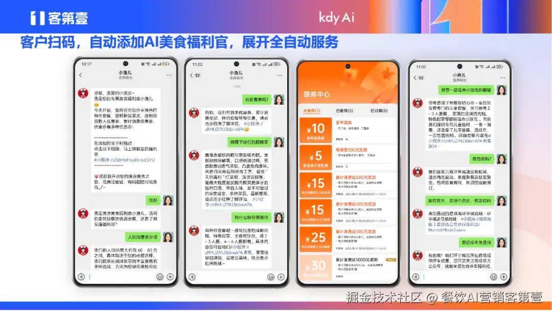 传统餐饮引流,全靠营销“能人”策划活动、投放平台,不仅成本高,还容易因为“能人”离职导致引流断层。客第壹引流自动化模块,彻底解决这一问题:系统自动在门店桌面、收银台、外卖餐盒、社群等线上线下全触点,植入专属AI极客玛,无需人工策划、无需专人值守,客户扫码即可被24小时在线的AI数字员工自动承接。
