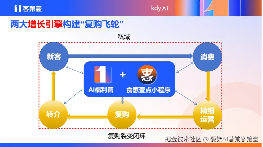 业绩增长的核心的是复购,而复购裂变的关键,是标准化的激励体系和自动化的执行动作——这正是“能人”难以复制的,却是系统可以轻松实现的。客第壹复购裂变自动化模块,通过“AI数字员工+食惠壹点小程序”深度协同,让复购和裂变自动发生。
