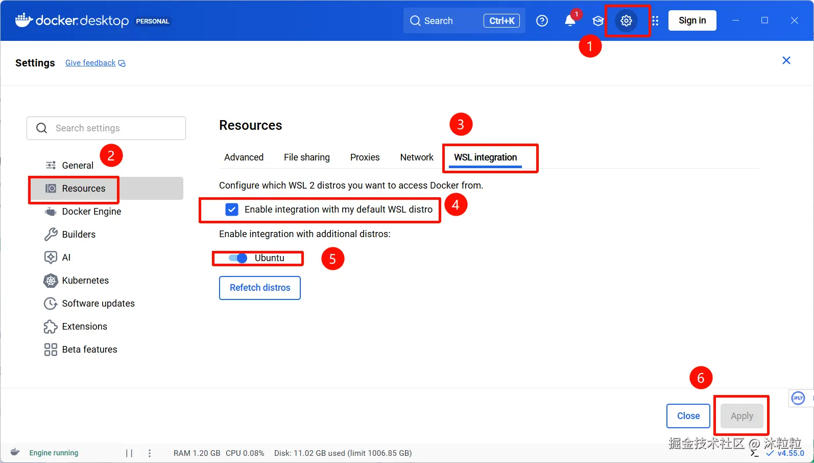We recommend to activate the WSL integration in Docker Desktop settings.