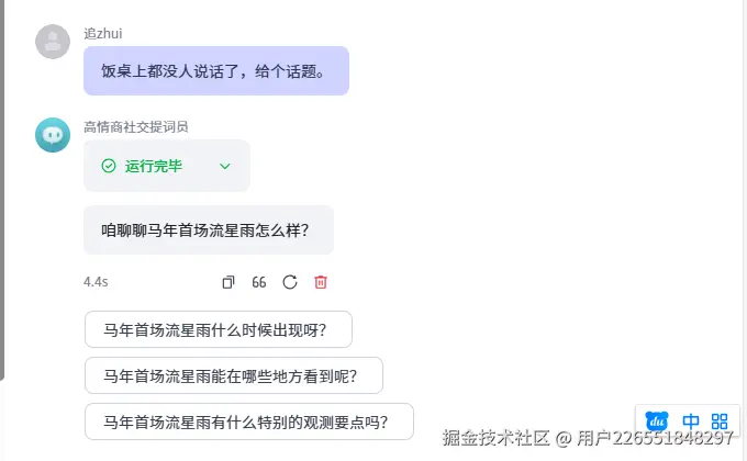 - 脚本转换:提取出具备科技感的破冰话题:“咱聊聊马年首场流星雨怎么样?”