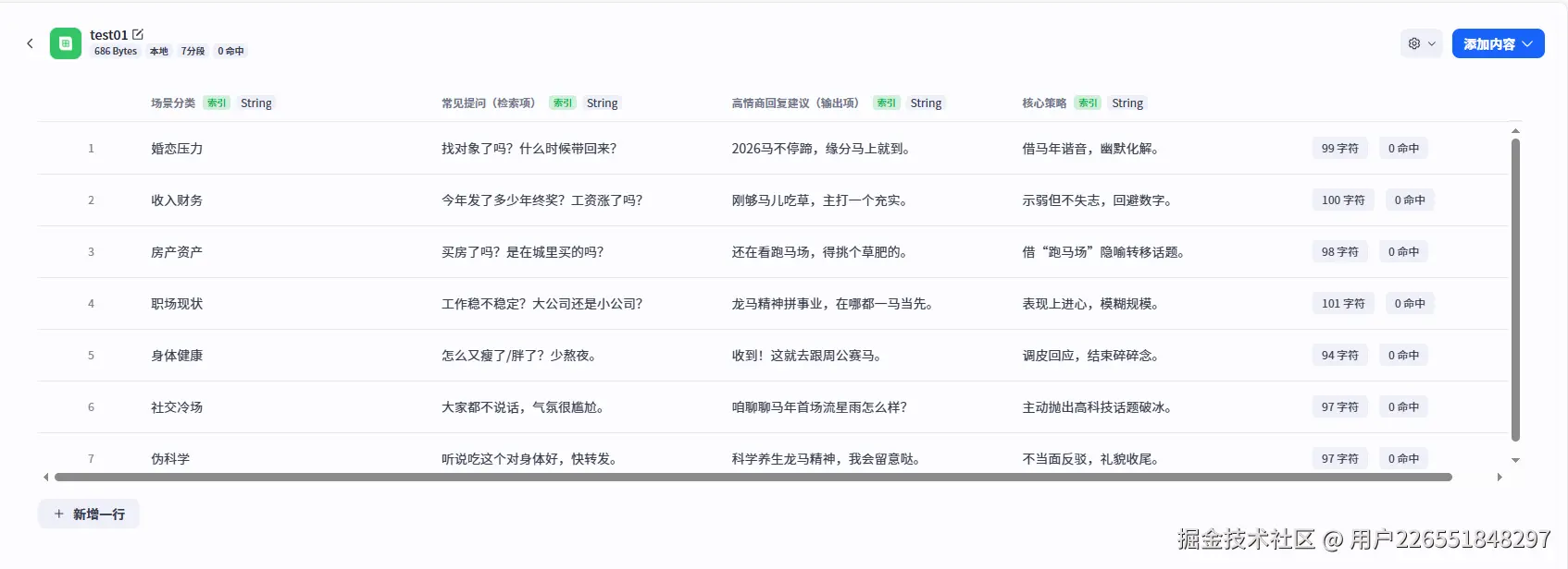 根据实战需求,我设计了包含四个核心字段的表结构,并针对马年场景填充了话术: