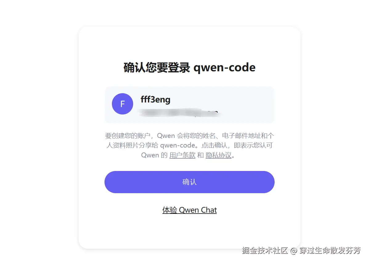 4、模型认证这里选择Qwen,需要进行认证。