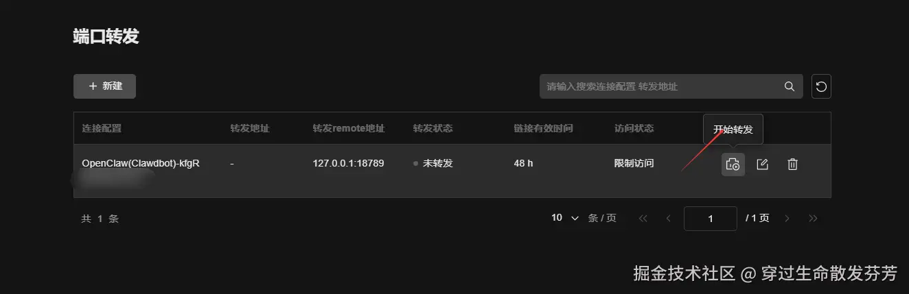 4、保存完成后,在端口转发列表的操作列,单击开始转发按钮。