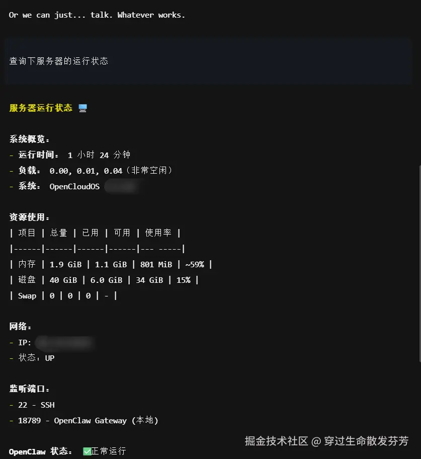 3、使用OpenClaw功能体验智能运维