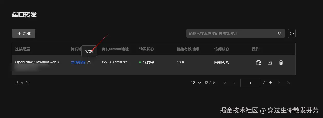 5、点击转发地址列的点击跳转按钮来来复制转发地址。