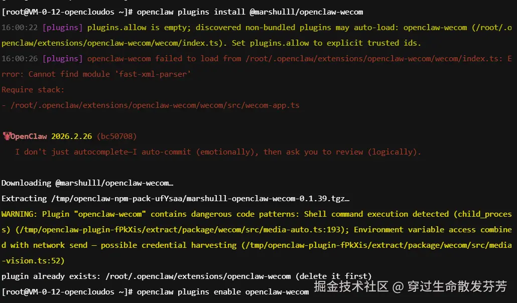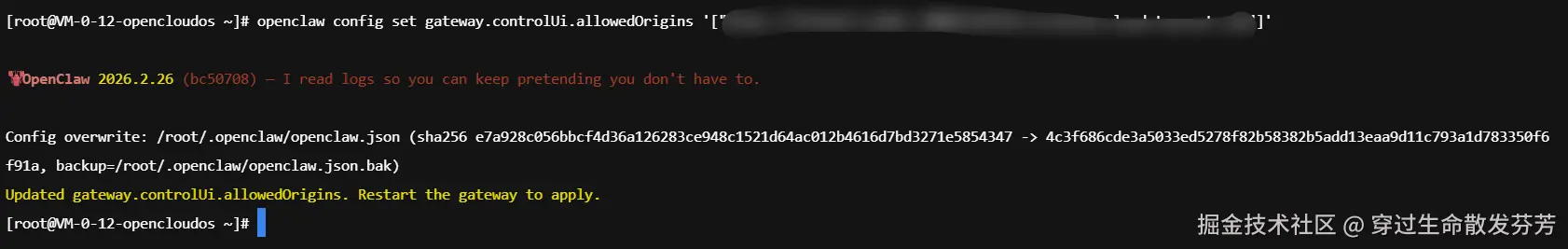 3、在部署了 openclaw 的服务器上输入如下命令: