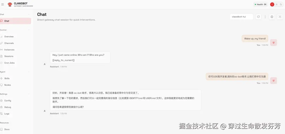 在OpenClaw聊天界面输入: